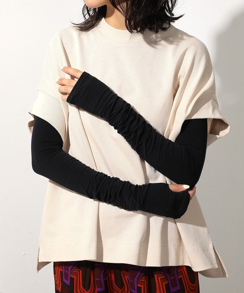 ・半袖やノースリーブとも合わせられるロングタイプ。