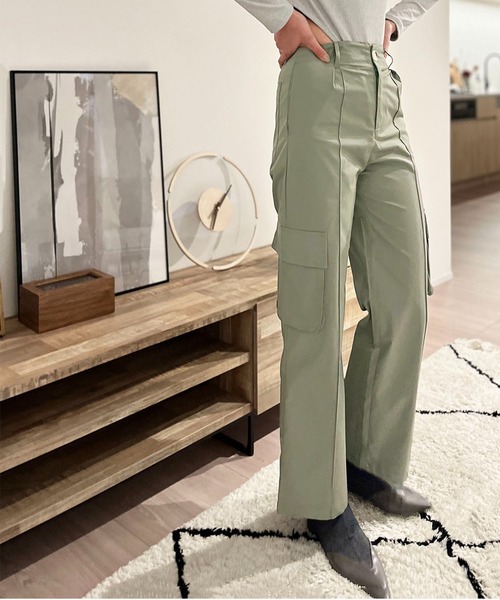 ストンとストレートシルエットのカーゴデザインパンツ。