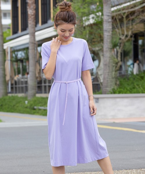 シンプルなデザインでストンと1枚で美しいシルエットが決まる大人可愛いTシャツワンピースです。