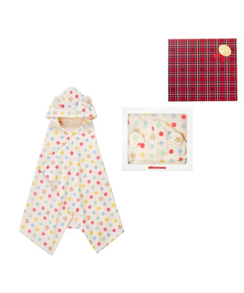 ドットとクマ柄のフード付きバスポンチョです。