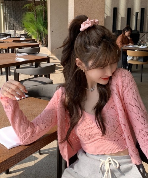 クロップド丈/ニット/アンサンブル/韓国ファッション/テレワーク/通勤/通学/学校/デイリー/デート/お出かけ/お買い物/お散歩/旬/トレンド/大人カジュアル