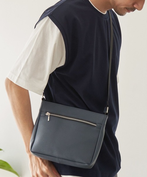 【デザイン】フロントに金属ファスナーを配した、高見え感のあるキレイめショルダーバッグ。
