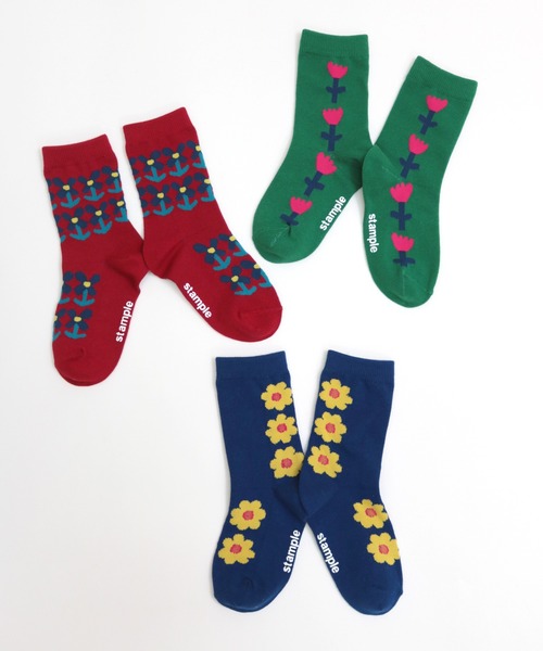 3足とも違うデザインの花柄ソックスで上くつを履いている時でも花柄が見える様にデザインされています!
