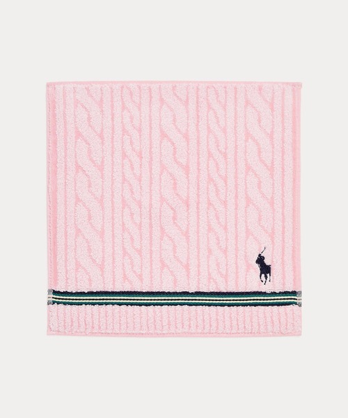 質感のあるコットンテリー、ケーブルニットのモチーフ、シグネチャーのポニー刺繍を組み合わせたハンカチーフ。