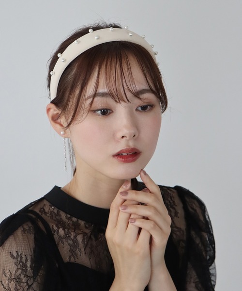 マットなサテンの上にパールがランダムに散りばめられた主役級のヘアアクセサリー。