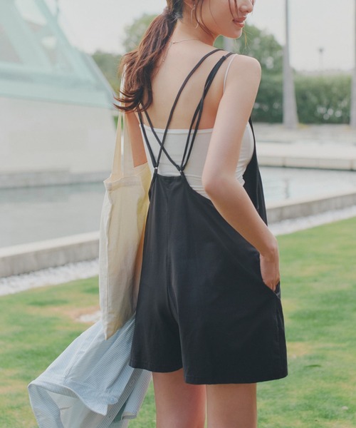 後姿も可愛いショート丈のオールインワン。