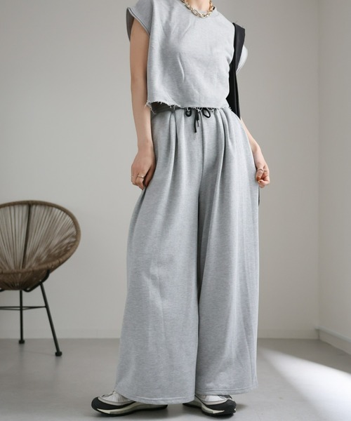 ワイドシルエットでありながらウエストは幅広ゴムですっきりとみせてくれます