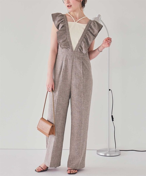 ・大人可愛いを演出するフリルデザインオールインワン。