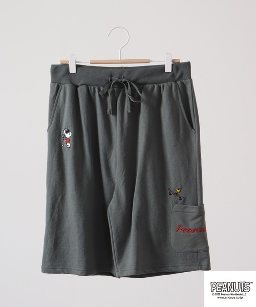かわいいスヌーピーや仲間たちの刺繍がワンポイントでデザインされたハーフパンツ。