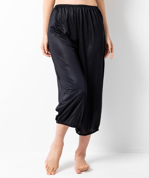 80cm丈は裾にゴムが入っているので、ロング丈のボトムの裾を挟んで、地面についてしまうのを防いでくれます。