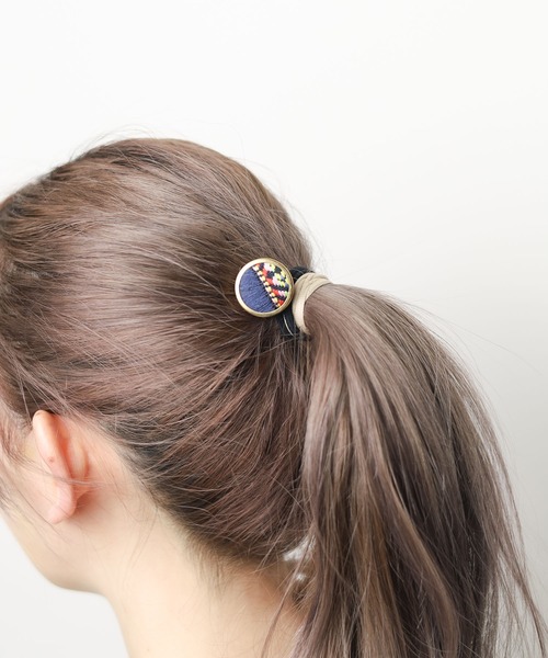 ヘアゴム 「Al」「Natural Design」エスニックボタンヘアゴム