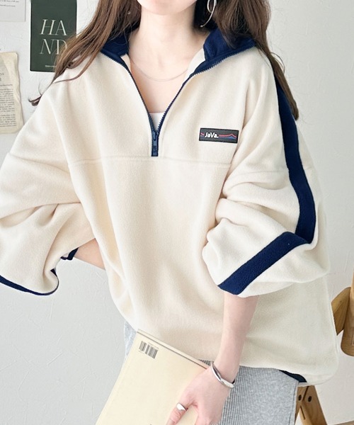 ちょいレトロ見えなフリースハーフジップトレーナー。