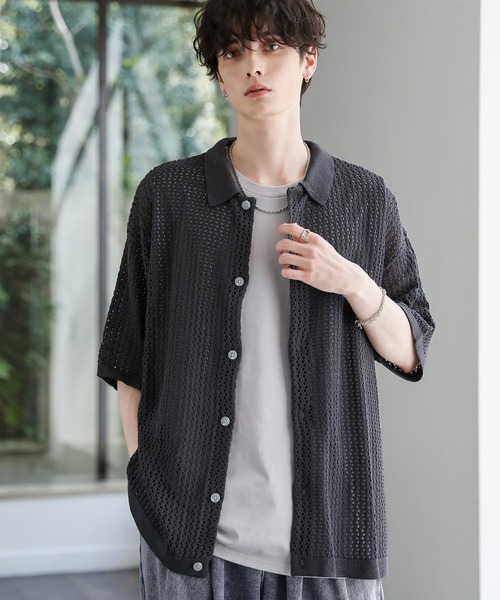 軽い着心地と透け感が、春夏にぴったりのメッシュ編みニットシャツ。