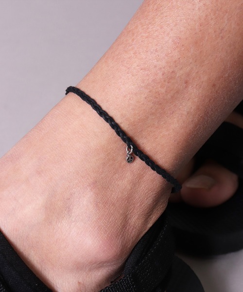 ●アースカラーでピースマークのチャームがアクセントの編み込み紐アンクレット●
