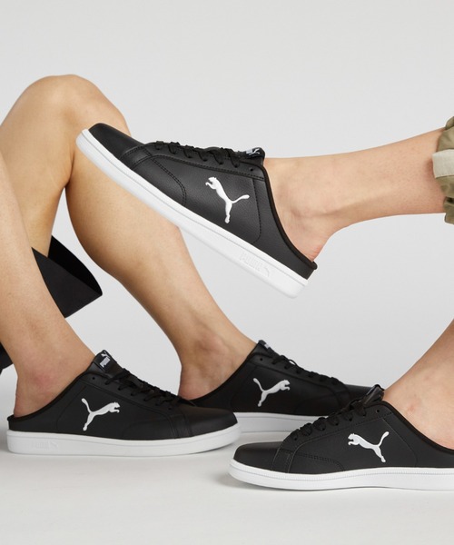 商品情報【プーマ直営店限定】クラシックな魅力と快適さを融合した、スマッシュベースのミュールスニーカー時代を超えて愛されるプーマの定番「スマッシュ」をベースにした、ミュールタイプのスニーカーが登場。かかとを覆わないデザインで、足入れが簡単&着脱もスムーズ。忙しい日常やリラックスシーンにもぴったりの一足です。インソールには、プーマ独自のSoftFoam+クッションを搭載。足裏にやさしくフィットし、長時間の着用でも快適な履き心地をキープします。両サイドには大きめのプーマキャット刺繍を施し、シンプルながらも存在感のあるデザインに。シュータンにはプーマNo.1ロゴを配置し、ブランドらしさをさりげなく演出します。