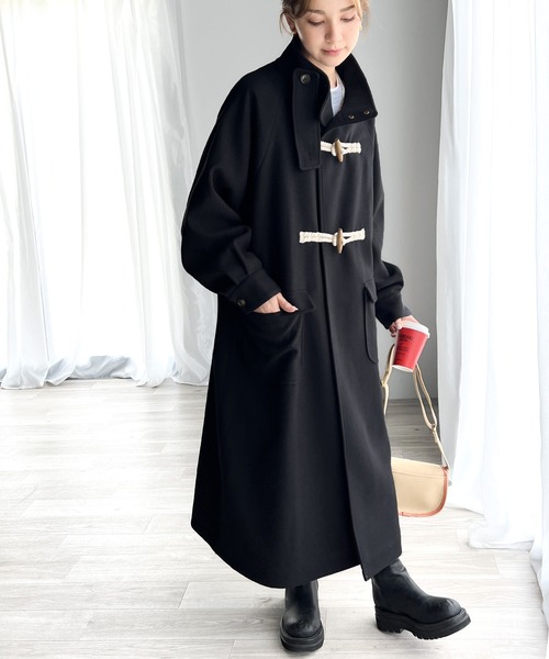 ダッフルコートにボリュームスリープでアップデートされたトレンドアイテム。
