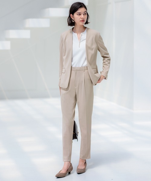 ベーシックなデザインで着回し力抜群なパンツスーツ。