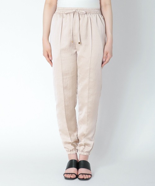 ワッシャーサテンテーパードパンツきれいめな微光沢のある素材でつくったジョガーパンツ。