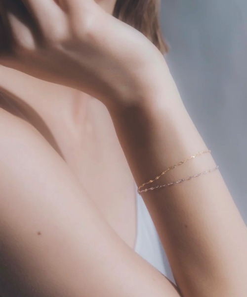 光を受けて輝くよう計算されたカッティングが美しいチェーンを使用したブレスレット。