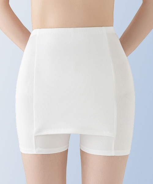 気になるY字ラインを賢く隠すカバースカート付きのインナーペチコート。スカートが脚に張り付いても、気になるY字の張り付きをカバーします。