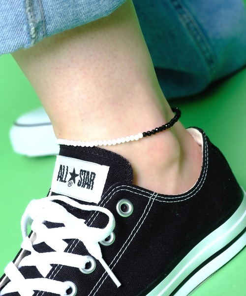 足元のアクセサリーとして定番のアンクレット。90年代リバイバルの流れもあり注目のビーズスタイル。サイズを気にせずにユニセックスで使える、チェーン&フックギミックも機能的。