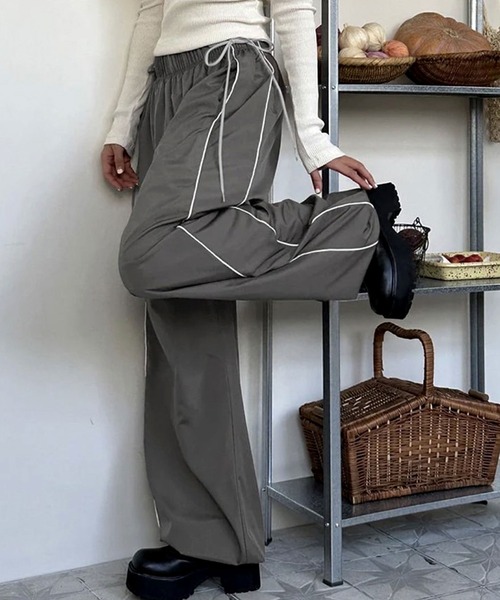 【 BARELY BLUE / ベアリーブルー 】 Y2K サイドライン ドロスト ナイロン パンツ