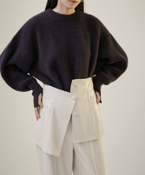 ボタンを留める位置でマルチウェイに楽しめる、スタイリングのワンポイントにぴったりなフェイクレザーを使用したビスチェ■デザイン/シルエット