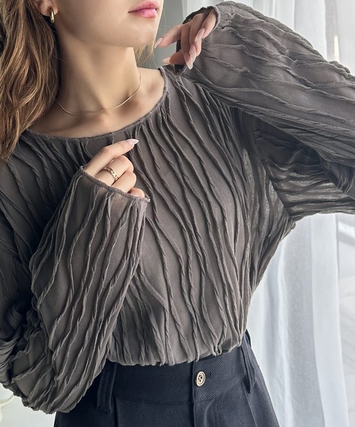 3Dウェーブのシワ加工を施したとろみのあるカットソー素材です。