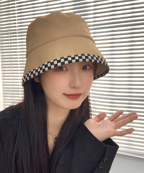 ・存在感のある格子柄が目を引くバケットハットで、オシャレしながら日焼け止め、UV対策に◎