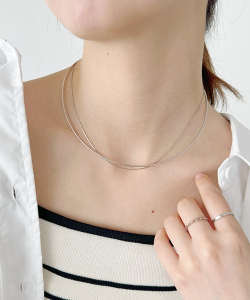 ワイヤーの後ろを広げて首に引っかけるようにしてご着用いただけます。