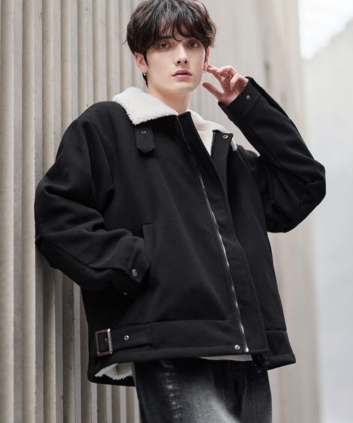 メルトンと裏ボアの組み合わせで暖かく着用できる冬アウター。