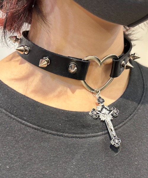 『NOVESSEL/ノベセル』より、ハートクロスチョーカーの入荷です。マットなフェイクレザー素材に、ハートクロス+スタッズの装飾をあしらったチョーカー。