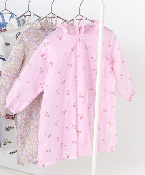 apres les cours(アプレレクール)のレイングッズ「さくらんぼ・花柄 ランドコート」は、雨の日でも気持ちが明るくなるような楽しいデザイン。お気に入りのレイングッズでお出かけしよう♪