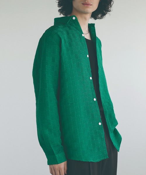 大胆で洗練されたスタイルを追求する男性に向けてデザインされています。ビッグシルエットは、ゆとりのある着心地を提供し、リラックス感とモダンさを同時に表現します。また、エンボス加工によって生まれる独特の質感は、シャツ自体がアクセントとなり、他のアイテムとの組み合わせで個性的なスタイリングを実現します。