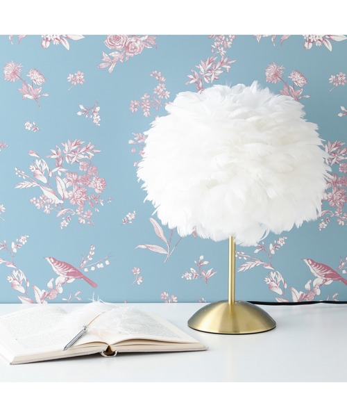 ボリュームのあるフェザーのシェイドに明かりを点すとやわらかな光が広がります。