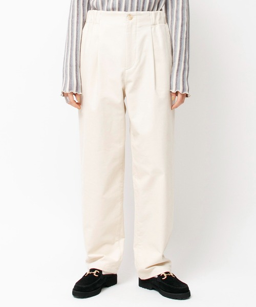 裏起毛のストレッチコーデュロイを使用したタックテーパードパンツ。