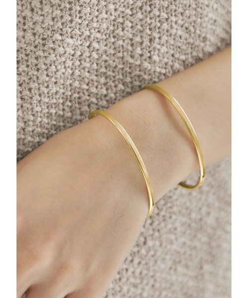 洋服自体の主張が強いときなど、アッサリとした存在感でオシャレに手元をまとめてくれる洗練されたデザイン。華奢めの線が上品で涼し気な輝きを生む、スッキリとした飽きのこないバングルになっています。
