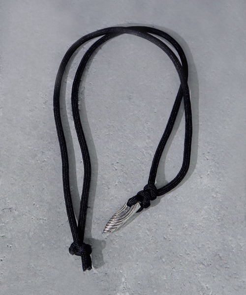 エッジの効いた弾丸の様なモチーフが目を惹くネックレス。個性的なデザインが存在感抜群なのでコーディネートのアクセント使いにオススメ。