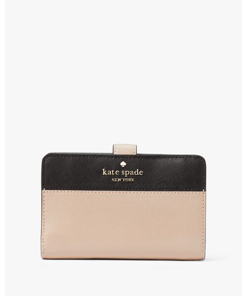 エレガントなセンスが漂うカラーブロックにブランドロゴをあしらい、洗練のルックに仕上げたミディアムウォレット。クレジットカード、紙幣、小銭、i.d.、レシート、チケットなどを収納できる実用性を備えつつ、バッグの中で邪魔にならないコンパクトなサイズ感で仕上げています。