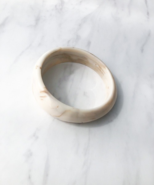 斜めに幅が異なる躍動感を感じるサークルフォルムが印象的なアクリルバングル。