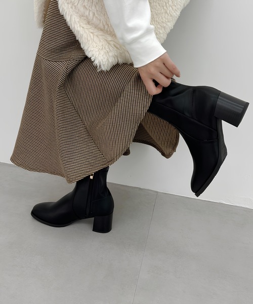 シルエットにとことんこだわった美脚効果抜群のブーツは、後ろ側を切り替え