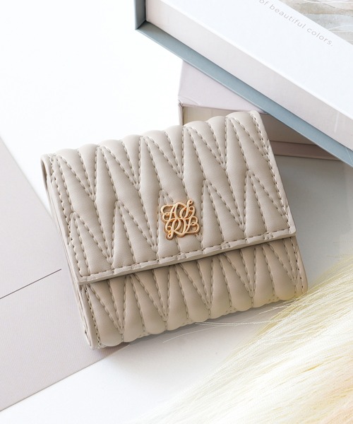 ・キルティングデザインが高見えするデザインの三つ折り財布。