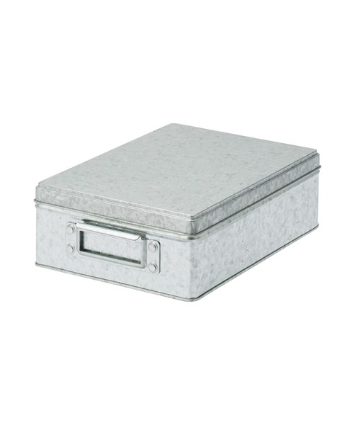 商品サイズ:約幅19×奥行27×高さ8.5cm 建築材料として使われる錆びにくく丈夫なトタンを使用しました。積み重ねてもズレにくい仕様で棚置きでもスペースを有効に使うことができます。外から中身がわかるよう持ち手部分に印を付けれるようにしました。
