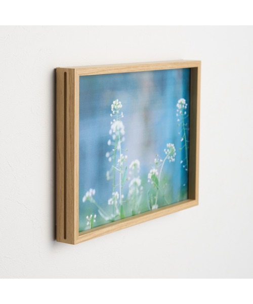 インテリアになじむよう、フレームにオーク材をつかって仕上げました。壁付には市販のワイヤーや紐等を使用して吊下げるタイプと、二重画鋲を使用して貼り付けるタイプが選択できます。※備品は付属されておりません。(フレーム外寸:約225×312mm、有効表示寸法:約206×293mm、収納可能サイズ:約210×297mm、重量:約0.41Kg)