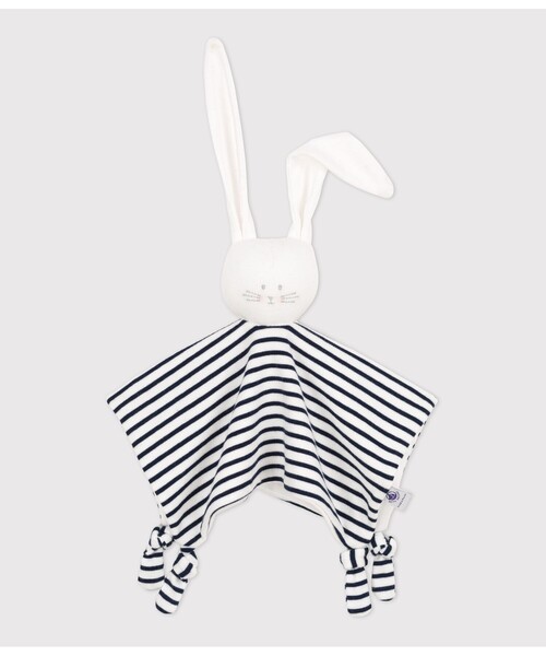 ブランドを象徴するミニマリニエールボーダーとウサギの顔をあしらったドゥドゥです。第二の肌と呼ばれるやわらかな手触りの1×1リブ編み素材を使用。「ドゥドゥ」とはフランス語で、「ベビーが肌身離さず持っているお気に入りのもの」を意味します。いつもベビーの隣に置いておきたいアイテムは、ギフトとしてもおすすめです。