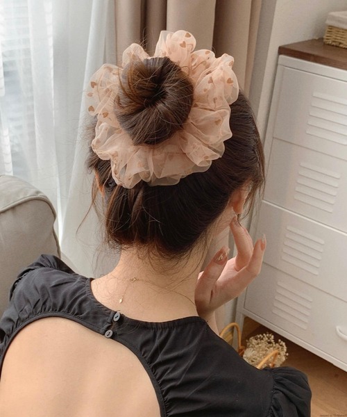 さりげないハート柄が可愛らしいオーガンジーのシュシュ。