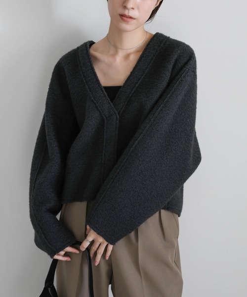 ゆったりとしたオーバーサイズシルエットが体を包み込むショートカーディガン。