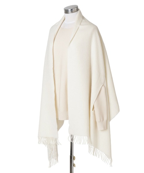 ポンチョとして纏ったり、首に巻いたりと程よいボリュームがうまれ巻き方やアレンジが楽しめるのも魅力。