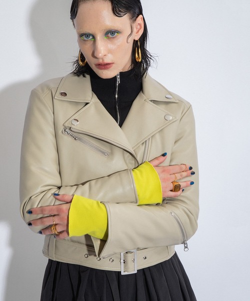シープスムース調フェイクレザーを使用した、コンパクトサイズのライダースジャケットです。