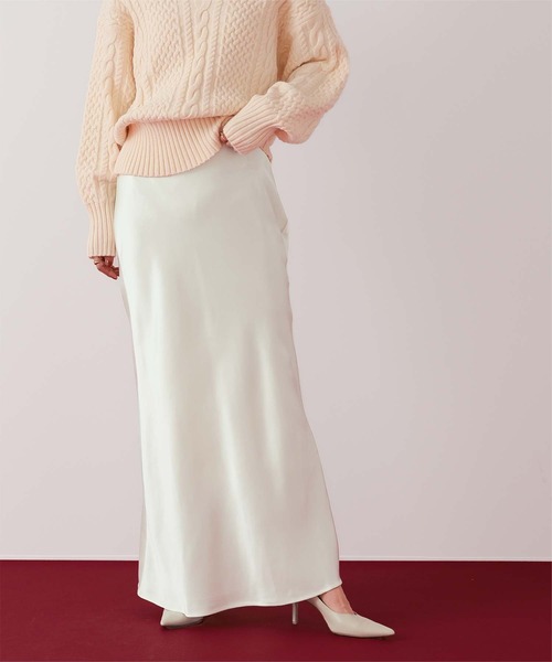 ヒップラインから綺麗なマーメイドラインを描くサテンマキシスカート。